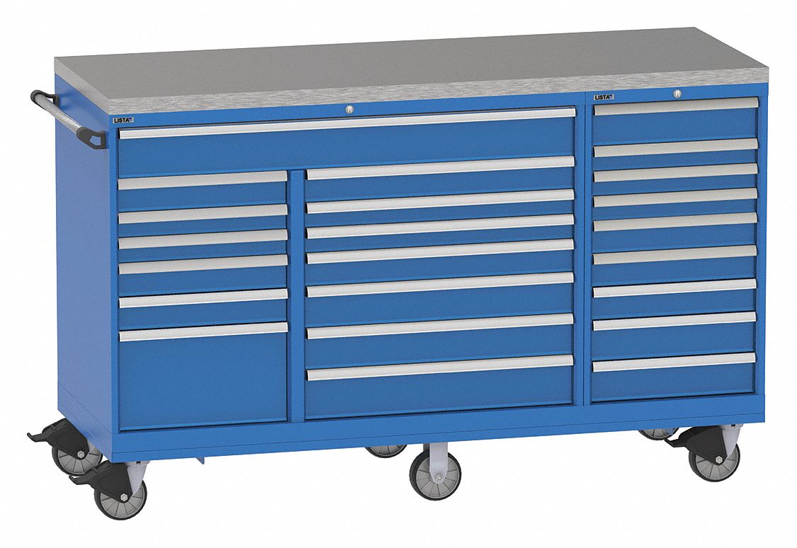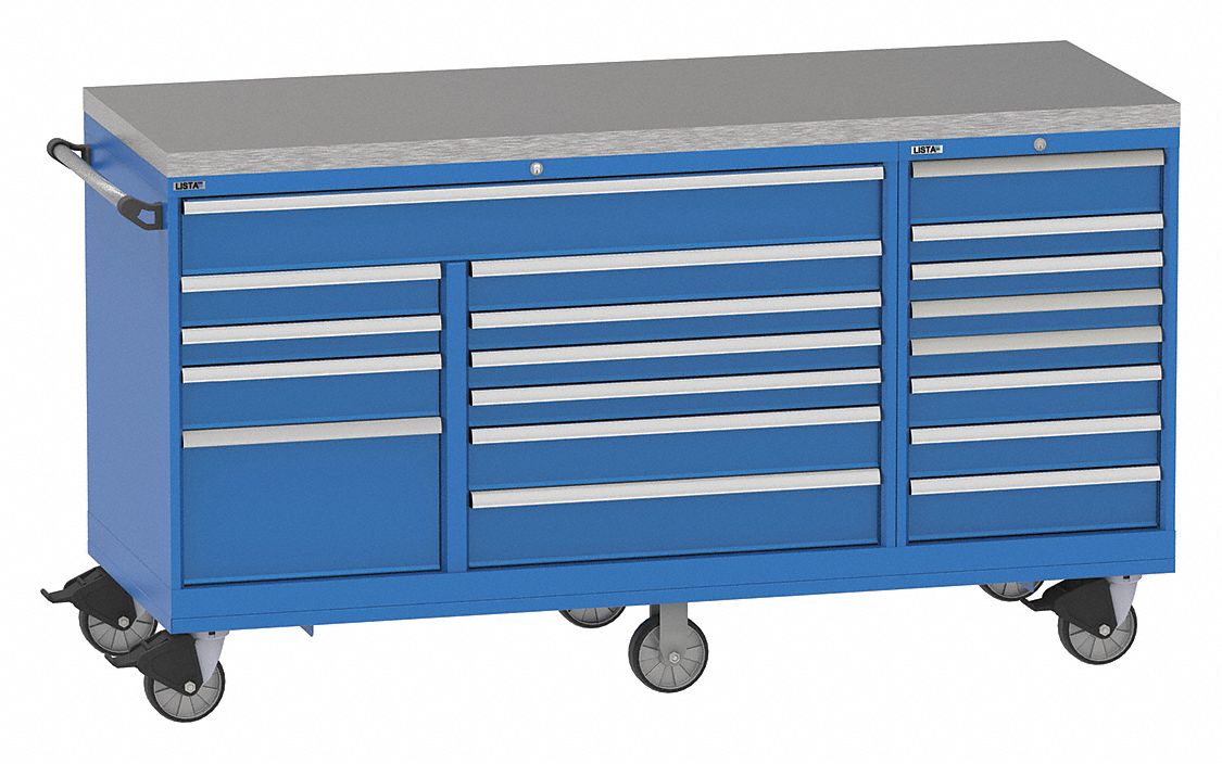 LISTA Mobile Counter Height Modular Drawer Cabinet, 5 ... from static.grainger.com All the cabinets are painted with esd paint, which is critical in the storage of sensitive electronic components. Lista cabinets & storage lista international has one of the broadest storage and workspace product offerings of any company in the industry. For increased flexibility, lista's mobile cabinets can be outfitted with lista's flexworks accessory system. Each lista drawer includes an individual drawer latch to secure it in the closed position for safety when moving. Whether it's a drawer cabinet, workbench, cabinet or shelving system, all of the solutions can be individually configured and thus flexibly adapted to a wide range of requirements. The extensive range of lista cabinets enables you to customise and add to your storage and workspace equipment. Includes mobile base with casters for safe, simple transport. Lista didn't invent the workbench;