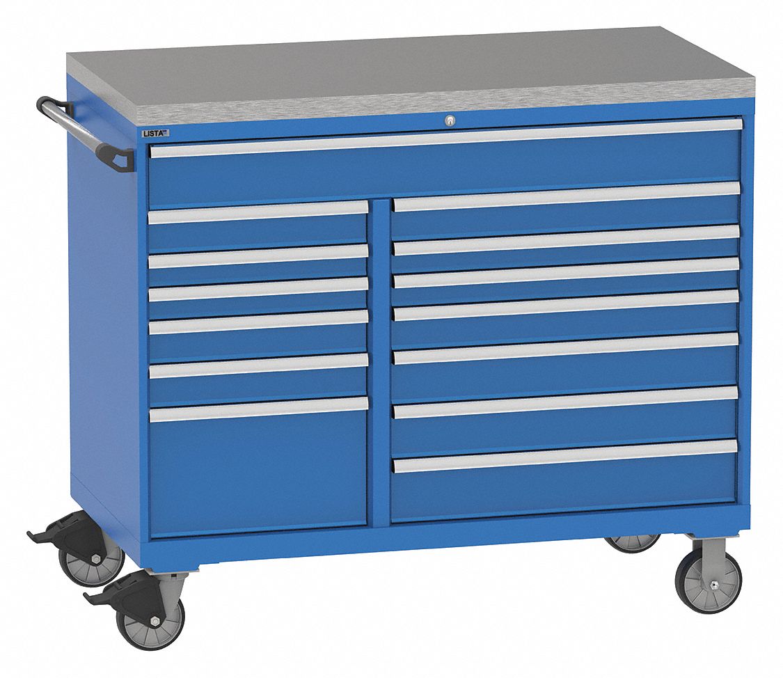 This increased mobility provides greater convenience and gains extra space. Lista® mobile drawer cabinet is constructed with welded steel for long lasting durability. Lista is the recognised market leader in europe for workspace and storage solutions. Lista mobile drawer storage cabinets allow you to bring tools and parts directly to the worksite, boosting efficiency and productivity. The wide selection of cabinets, workstations and shelving systems can be freely combined to make your workspace work. In addition to the stationary versions, all lista drawer cabinets are also available as mobile cabinets. Individual drawer latches and handles ensure protection of contents. Secure cabinets store small to very large sized items. Drawers automatically latch when closed. Browse the complete line of lista xpress products available for shipment in 3 to 5 days and learn about the entire lista product line. Browse the complete line of lista xpress products available for shipment in 3 to 5 days and learn about the entire lista. View product descriptions and ordering information for our entire line of cabinets, mobile cabinets, toolboxes, storage wall® systems, cnc storage products, and more. Of drawers 9, usable drawer height (9) 5 in, no.